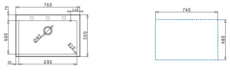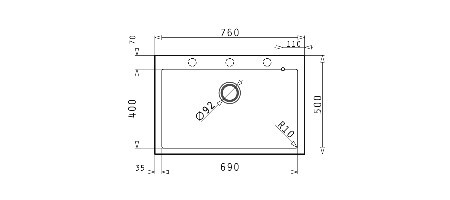 Διαστάσεις νεροχύτη: 760 x 500mm